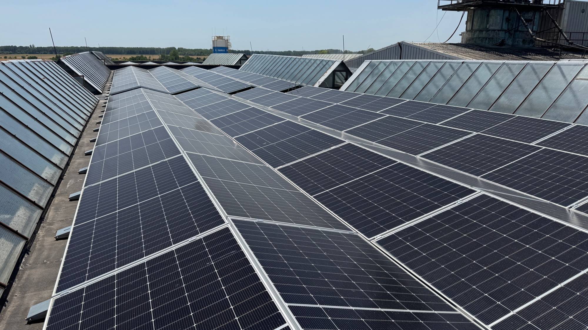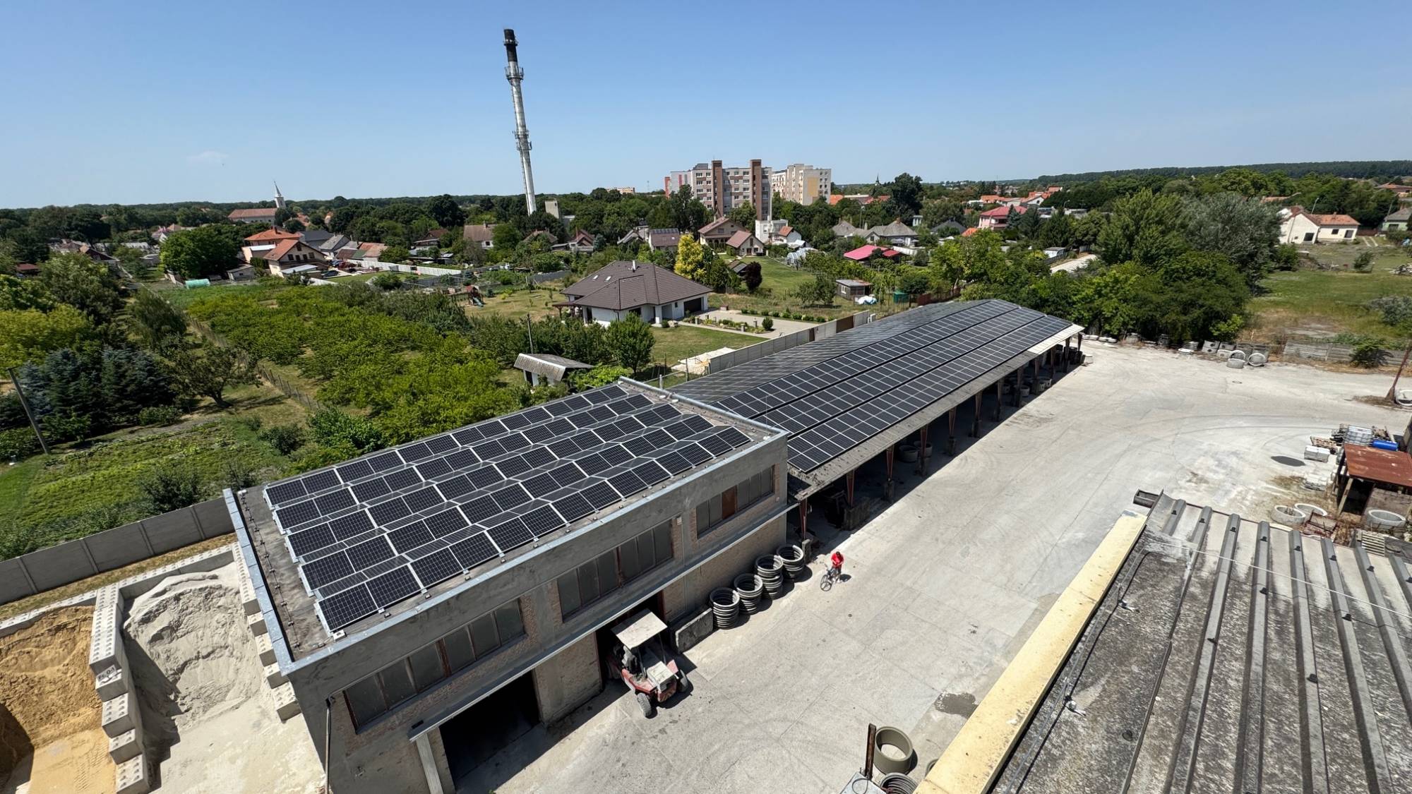 Návrh, dodávka a realizácia strešnej fotovoltickej elektrárne umiestnenej na budovách nachádzajúcej sa v priemyselnom areáli vo Veľkom Mederi. Kvôli statike budovy bol použitý systém montáže panelov Východ-Západ.